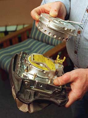 "They (airbags) are model and vehicle specific. Any time you get outside that realm, you're basically dealing with a safety product that is untested," says Breed manager Bob Stark. "Each of the inflators has different levels of(explosive) charge, as far as how aggressively they open. They're all designed as a system, with the bag -- how it's folded, how it comes out of the cover, and event the crash sensing mechanisms. So when you start mixing and matching these things, you have at best an unknown combination, and at worst a dangerous combination."
